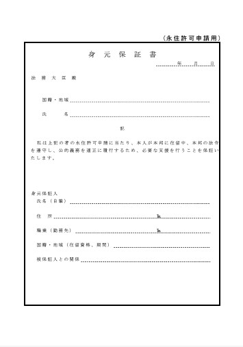 現在は、身元保証人となる人の書類は、身元保証書及び身元保証人となる人の本人確認書類等に簡略化されました。