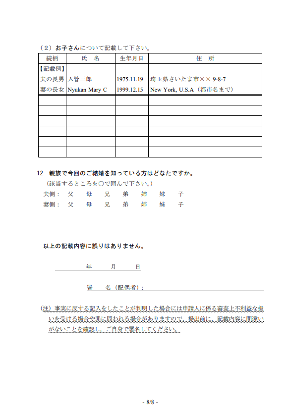 最後に、日本人配偶者が日付・署名を自筆します。 |