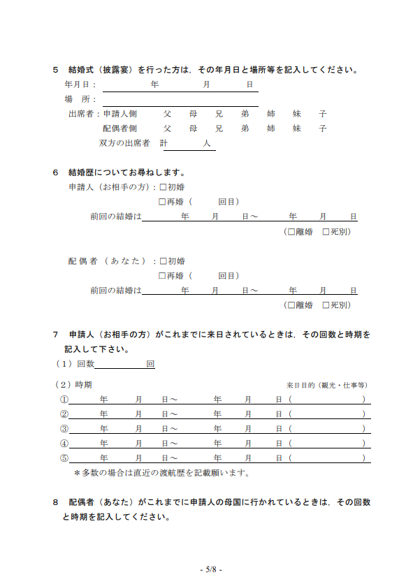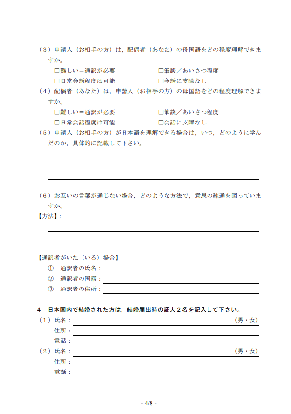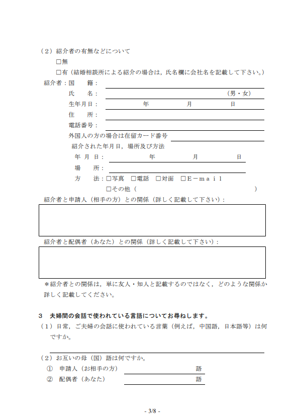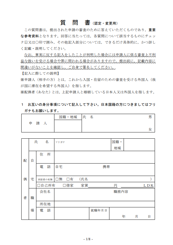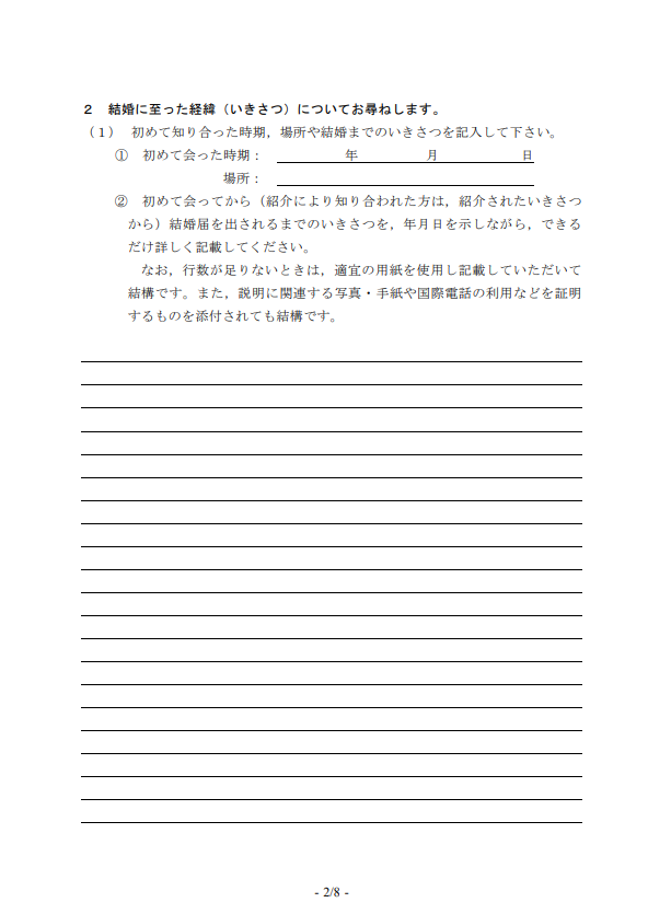 この入管所定の質問書は結婚の信憑性の説明や判断をする重要な資料になります。