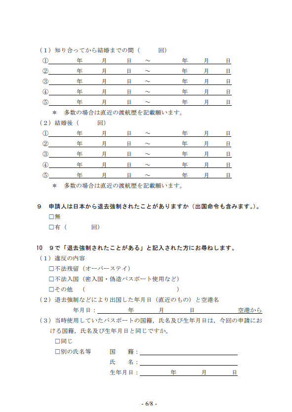 9 外国人申請人の退去強制歴を記載します
