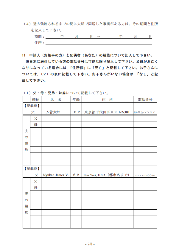 11 外国人申請人と日本人配偶者の家族について詳細に記載します |